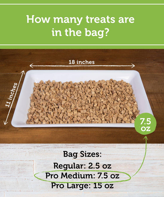 Ingredients: 100% duck liver 2024 Promo: 33% off if your order is over $300 Highlights: - Our freeze-dried duck liver is rich in B12, Vitamin A and copper - Our training morsels are smaller than our other treats, as you don't need a big treat to motivate your dog/cat when the treats are this yummy; you will also use a lot of treats during training, so this smaller size will save you money and reduce the calorie intake - Content of the 2.5 oz. bag equals about ⅔ lb of USDA-inspected raw meat before freeze-drying - The product has a scannable barcode on the back of the bag (not shown in photo) - Cats love these treats as well - You know your clients best to determine appropriate retail price points, our MSRPs are just that - suggestions