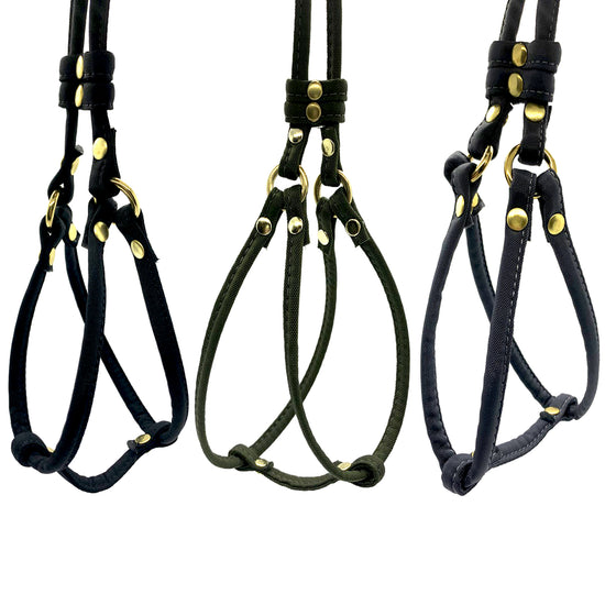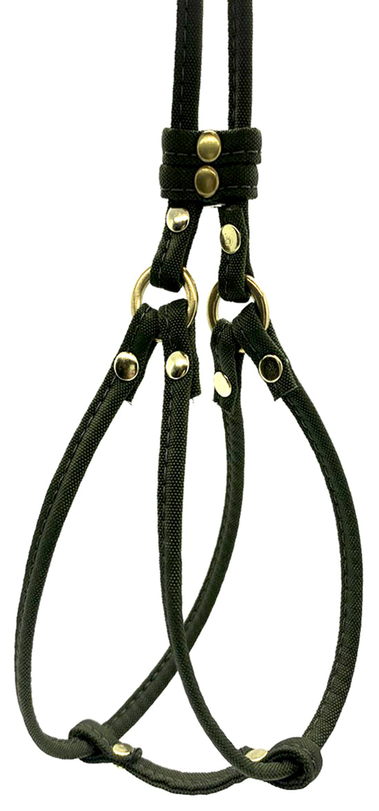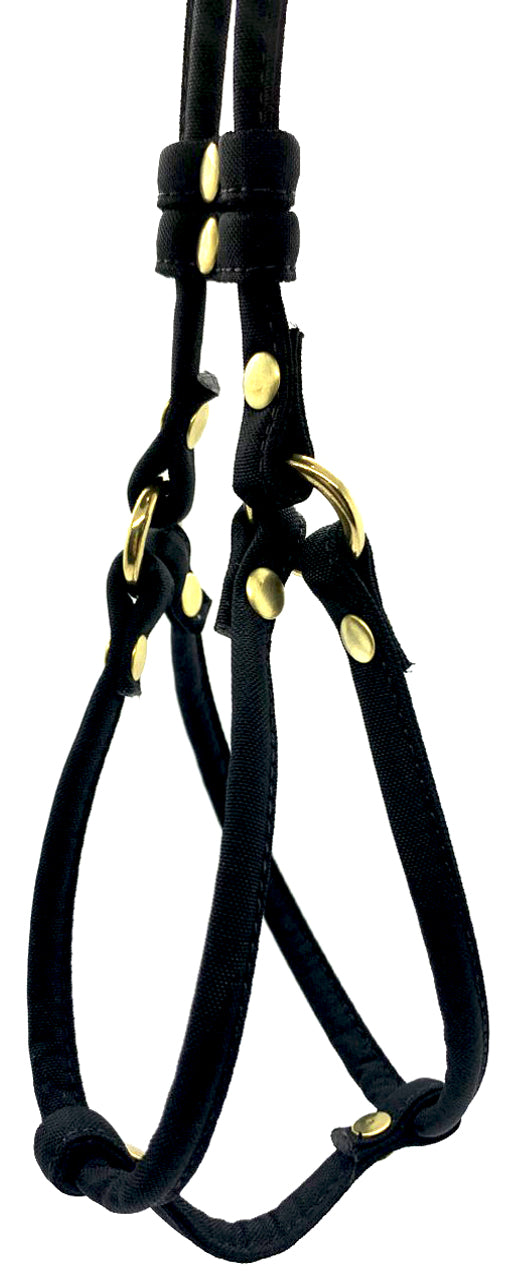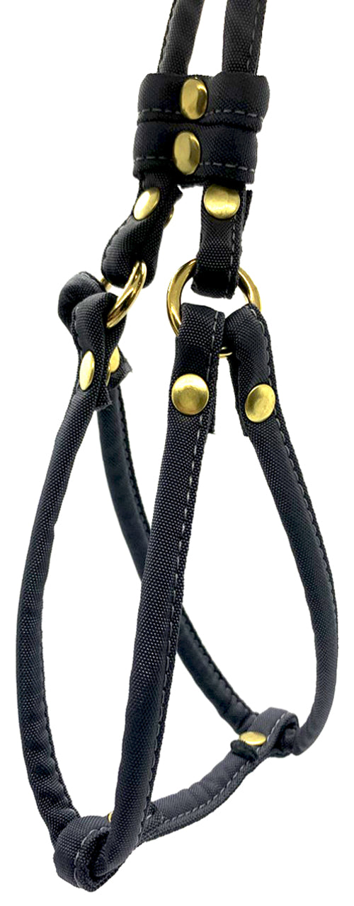 Same design and feel as our original step-in nylon dog harness but now with stylish Brass hardware!