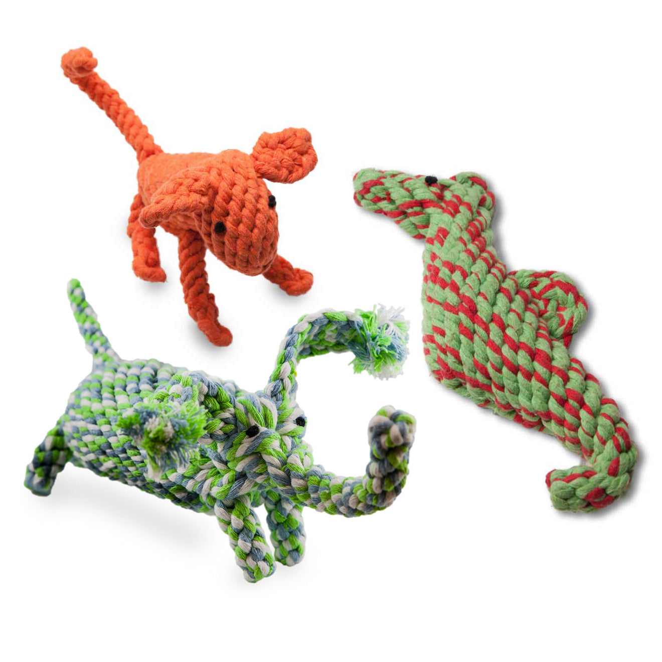 Our CottonPals are all natural rope toys made of cotton threads. They are handmade and free of harmful dyes and chemicals.