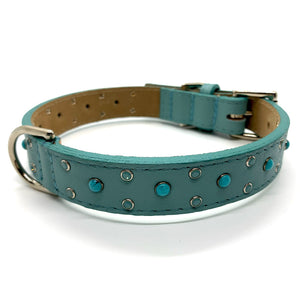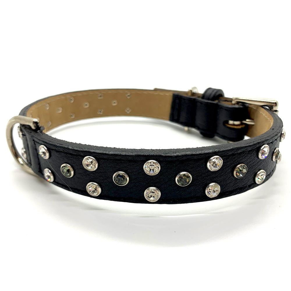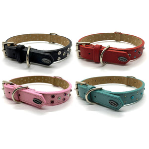 Check out our Dog Bar exclusive dog collars! Featuring soft hand-worked leather and Swarovski crystals riveted on, your fashionable furry friend will be sure to love this blingy accessory! Made in America.