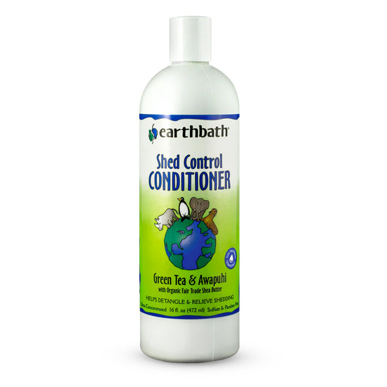 This vegetable-based Shed Control Conditioner softens, detangles and enriches coats while helping to reduce excessive shedding and dander. Organic fair trade shea butter, glycerin and allantoin act to nourish the skin, as well as lock in moisture to reduce dryness and scaling. Powerful antioxidants, including green tea leaf extract and omega-6 fatty acids, help protect the skin & repair skin damage which can trigger shedding. Earthbath Shed Control Conditioner is guaranteed to leave pets' coats incredibly soft and shiny.