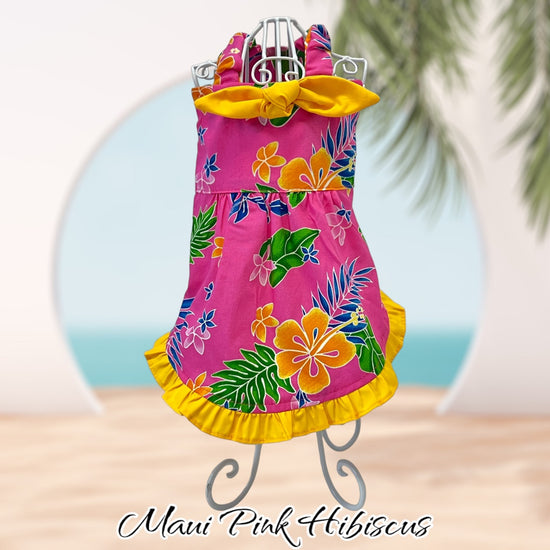 Luna Blue Maui Pink Hibiscus Aloha Dress