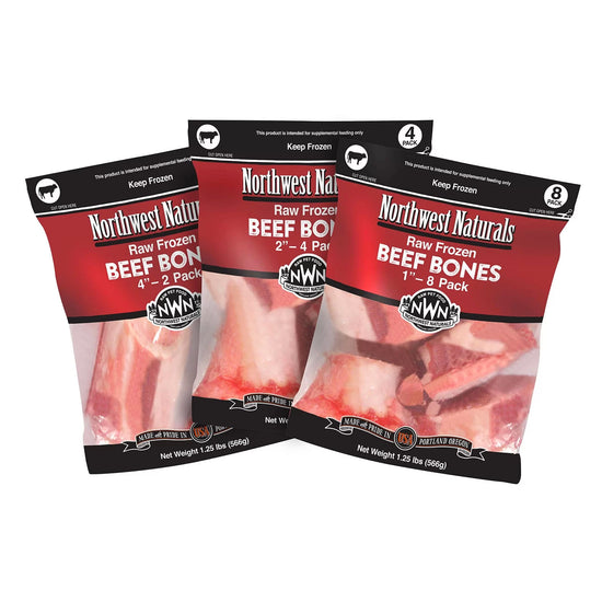 Northwest Naturals Frozen Beef Bones are a single ingredient treat that is highly palatable and easy to enjoy. Freezing raw locks in all of the taste, aroma, freshness and nutrients in this premium meat treat, making them a healthy and delicious snack. They are great rewards for your dog.