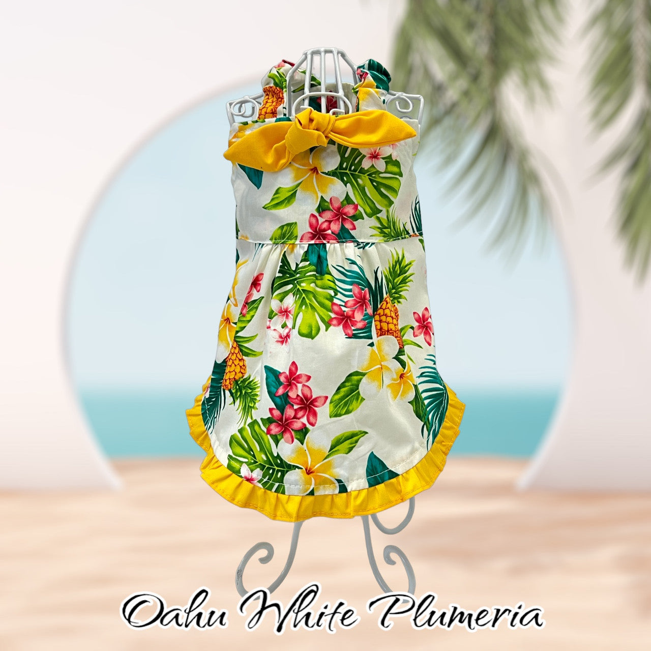 Luna Blue's Aloha Couture Collection are made from super soft 100% cotton fabric for all day wear. Dresses are made with Velcro closures for easy on and off. The neck area is made with elastic gathering for comfort. No matter where your pooch lives, they can always embrace the Aloha spirit by just showing off this collection.