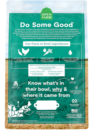 Open Farm high-protein kibble recipe helps prevent allergies and supports DHA healthy brain development, thanks to a blend of humanely raised chicken and pork, and wild-caught Ocean Wise® approved salmon, and non-GMO veggies and superfoods to support your puppy’s overall health.