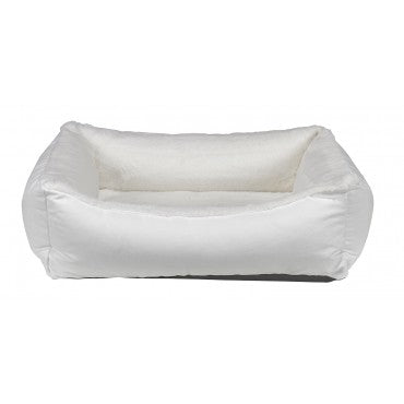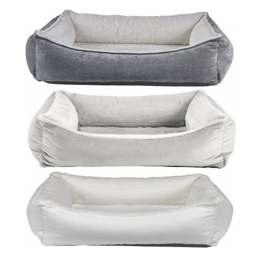 This innovative design features a "scooped" front which creates a modern sleek look while creating easy access for smaller or older arthritic dogs. The memory foam cushion insert is infused with Cool Gel Micro Beads which regulate body temperature. Elegant two-tone fabric combination and European style "scalloped" trim. Removable Cool Gel center cushion and zippered outer cover. Generous sizing maximizes sleeping area.