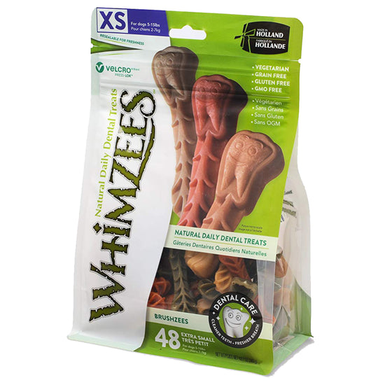 Brushzees is the new shape of dental clean. Redesigned grooves and ridges on the new daily dental treat help remove plaque and tartar like never before. Engineered for the way dogs grip and chew, they turn playtime into fresher breath and cleaner teeth, giving dogs a reason to jump for joy.