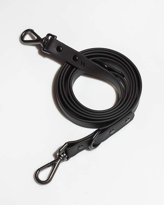 The leash is the perfect companion to our collar. A durable leash with two length options. Made from flex-poly straps and sturdy hardware, it's ideal for an easy temporary tie-up, quick short-leash adjustment, and everyday adventures. It's also dirt and odor resistant. Strap width - 3/4". Weight - 0.5 lbs.