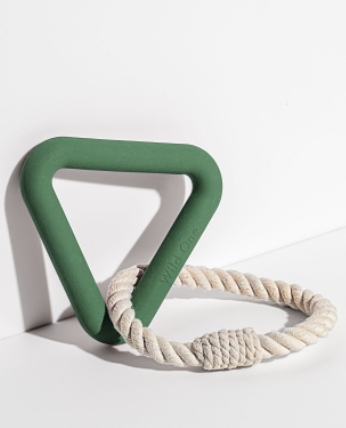 The triangle tug boasts two shapes, two textures, and is perfect for tug-of-war. If you’re in a multi-dog household or if you’re at the other end of your pups tug-match, the triangle tug is built for you. The triangle is natural rubber with a reinforced core for added strength. The rope is 100% natural cotton with a 7x looped seam and reinforced stitching throughout. Bpa-free and tested to meet food-safe standards. Triangle: 6.7" (w) x 6" (h). Rope: 6.3" x 6.3".