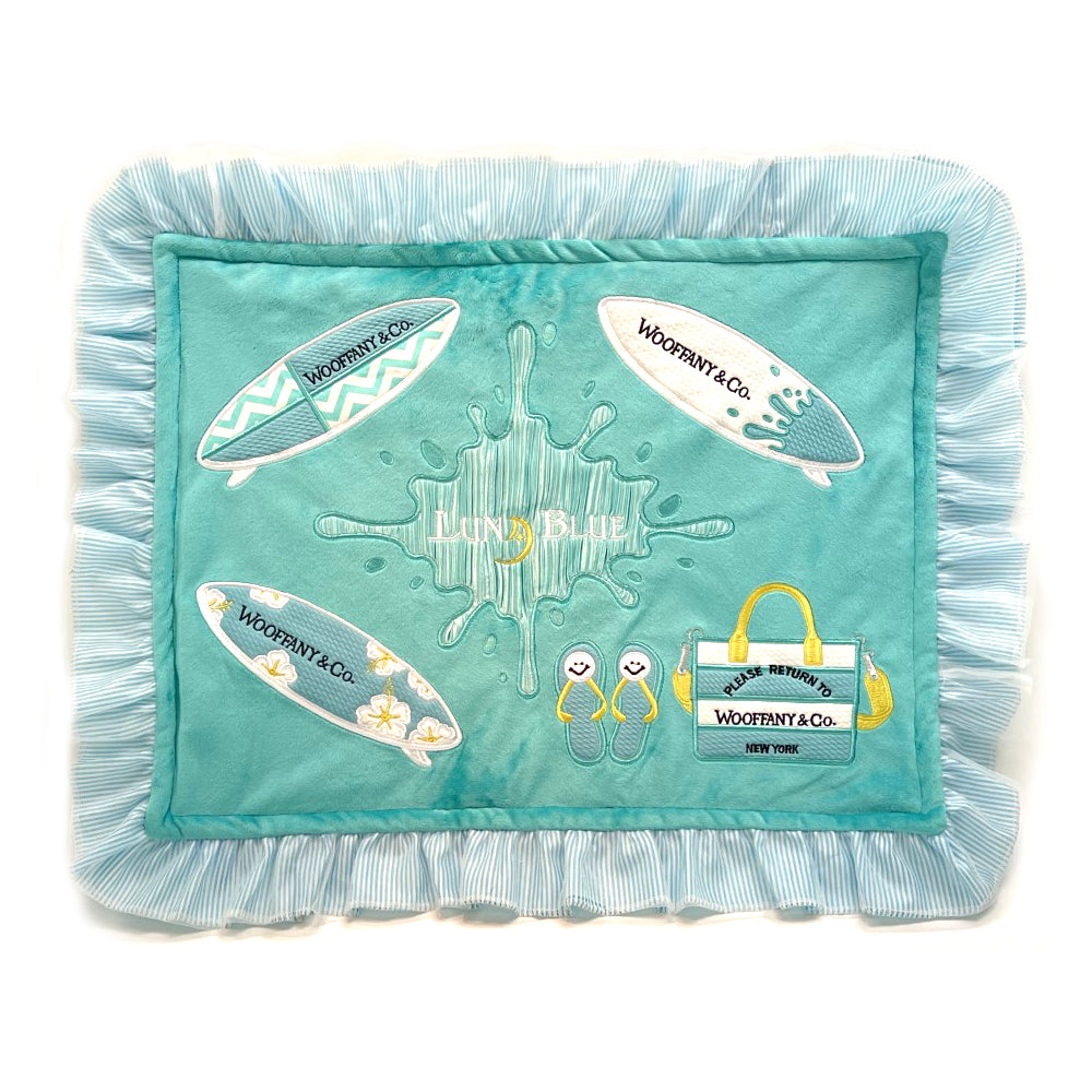 Made using soft plush fabric with embroidered designs, these Luna Blue mats are great for adding a layer of comfort to wherever your dog needs a break. This design features a play on one of the world's favorite designer brands.
